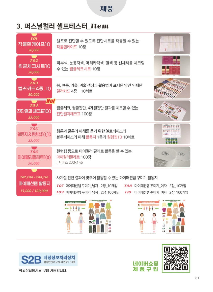 미니키트100과 컬러별 진단표로