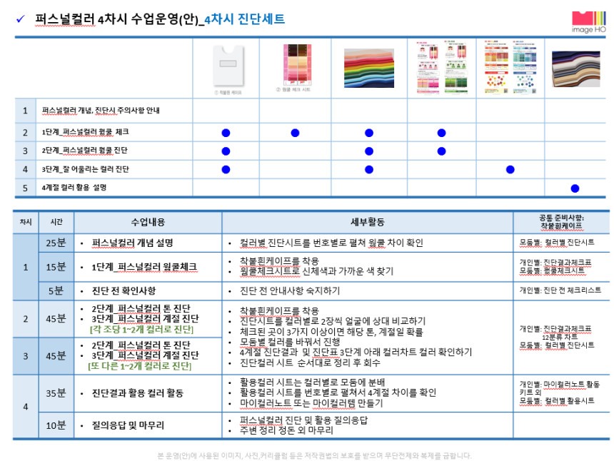 imageHo는 2007년부터 퍼스널컬러 컨설팅을 시작하여 퍼스널브랜딩, 이미지메이킹 등에 퍼스널컬러를 접목시켜 공공기관 및 기업교육, 전문 강사 양성 등을 수행하는 퍼스널컬러 전문 기업입니다.
