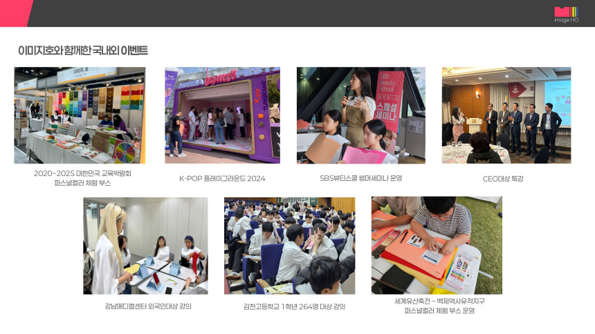 imageHo는 2007년부터 퍼스널컬러 컨설팅을 시작하여 퍼스널브랜딩, 이미지메이킹 등에 퍼스널컬러를 접목시켜 공공기관 및 기업교육, 전문 강사 양성 등을 수행하는 퍼스널컬러 전문 기업입니다.