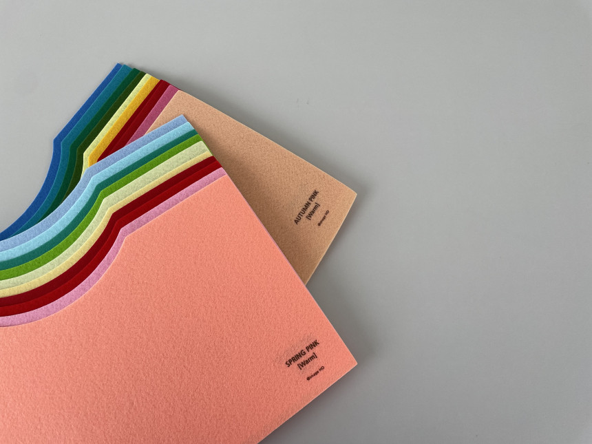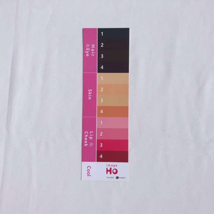 우측 하단에 각 [웜/쿨] 계절과 컬러명 이 인쇄되어 있습니다 .