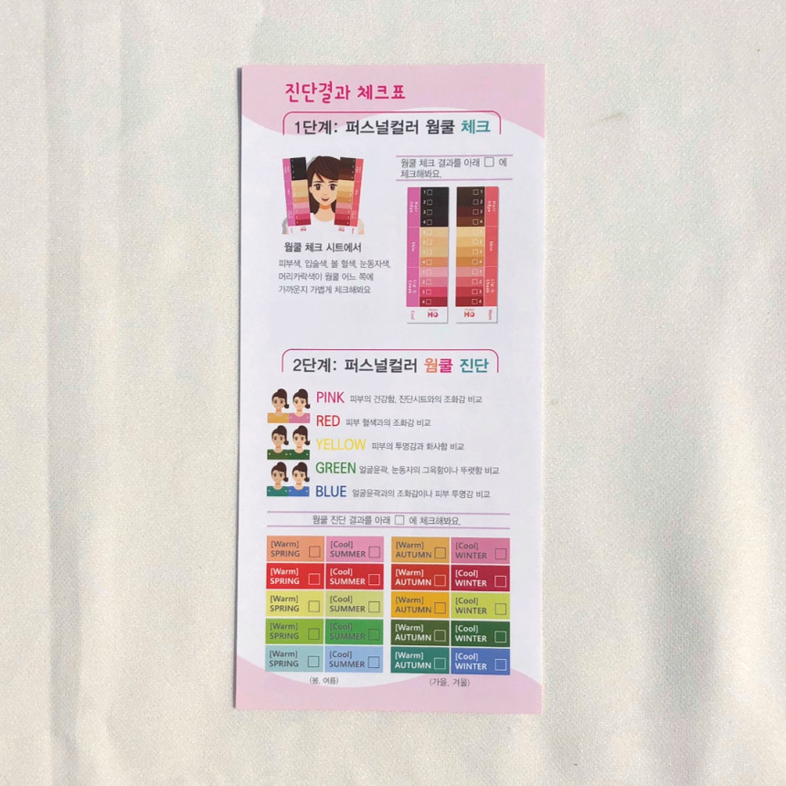 신체색을 체크해 볼 수 있는 웜쿨체크시트 1세트